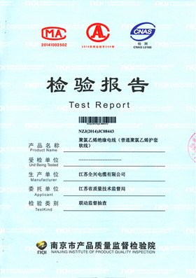 | 二0一四年电线电缆全国联动监督抽查合格 |